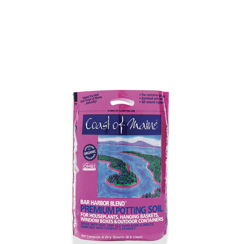 Coast of Maine Bar Harbor Blend Organic Potting Soil is an all-purpose potting soil made with natural and organic ingredients such as lobster, kelp, compost, perlite, and sphagnum peat. It is designed for houseplants, hanging baskets, or for potting indoor and outdoor container plants. Water and fertilize less with this nutrient rich, compost-based potting soil.