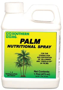 Southern Ag Palm Nutritional Spray is a micronutrient formulation used for the correction and prevention of yellowing and "frizzletop" of palms. Great for palms but can also be used on ornamentals, shrubs, and trees.